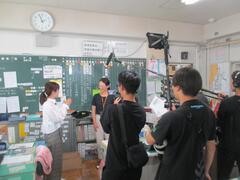 今年度は墨田区の情報発信推進校なので、今日はテレビ局の方々が来てテレビ番組の取材を受けました。日テレ「ZIP!」という番組の悩み相談室という企画で日本テレビのアナウンサーが子供たちの悩みに答えてくれました。子供たちはカメラの前でも緊張せずに元気に答えていました。放送は6月6日の予定です。