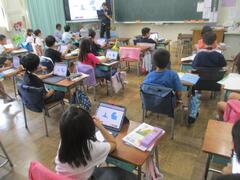 過ごしやすい気候になってきました。各学年、子供たちは頑張って勉強していました。2年生はタブレット端末を使って図形の勉強をしていました。