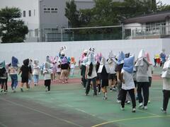 今朝は運動会の全体練習 2回目を行いました。開会式・閉会式の練習、応援合戦や大玉送りの練習を行いました。運動会本番でも、しっかりできるといいですね。