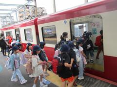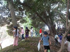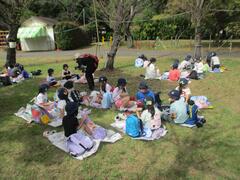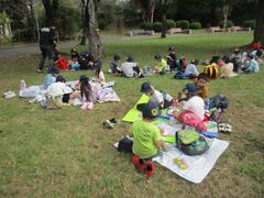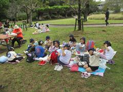 1年生は生活科見学で里見公園に行って来ました。電車に乗って行きました。里見公園ではどんぐりや落ち葉を拾って「秋さがし」を行いました。たくさんどんぐりを拾いました。お弁当を食べて、自由広場で仲良く遊びました。