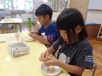ひまわり組の子供たちが大切に育てたポップコーンを収穫し、